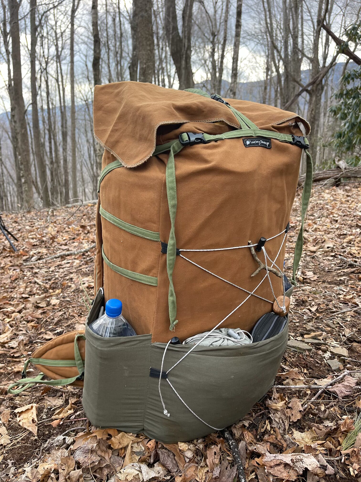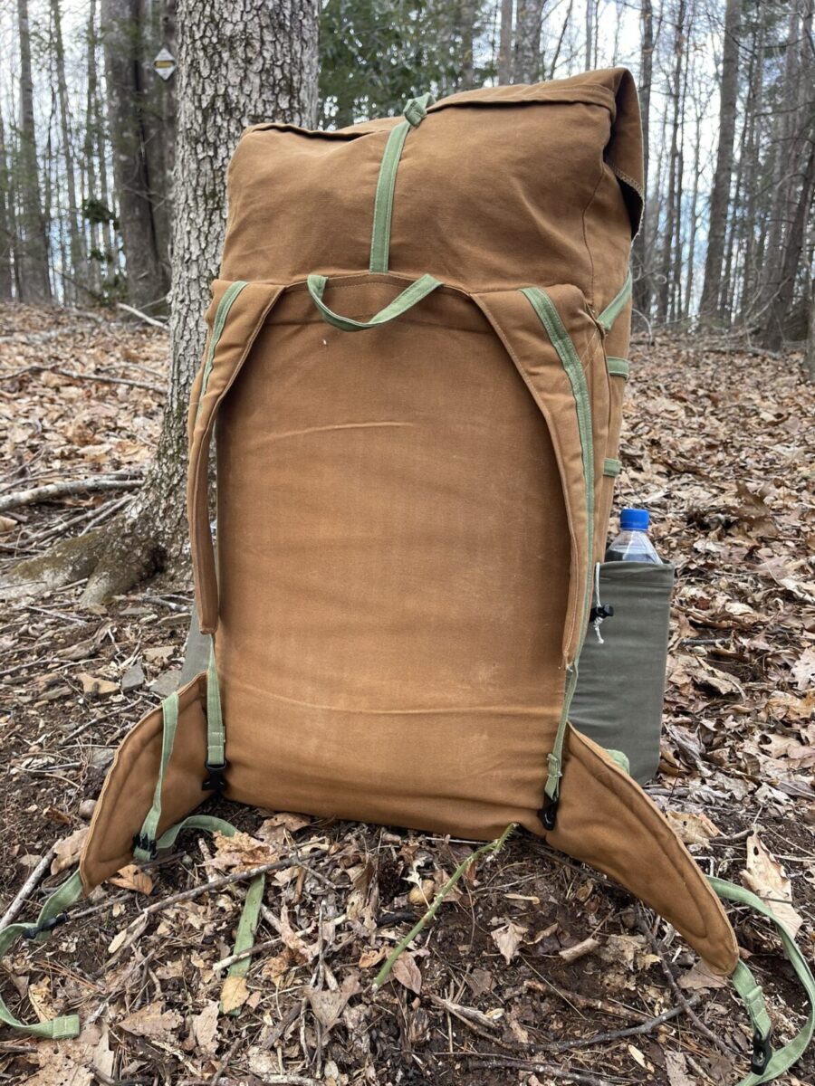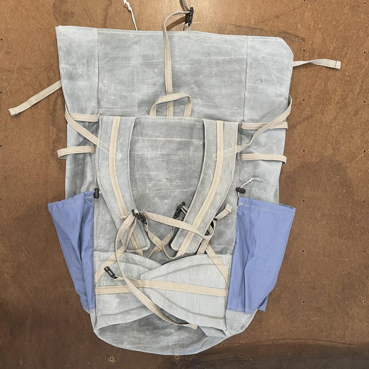 A rugged but lightweight canvas  backpack made from organic cotton canvas—with zero plastic, zero PFAS, and zero compromise. Whether you’re on a weekend backpack trip or thru hiking, this 65 liter sustainable backpack keeps your load light and your stride balanced. Rugged but light beeswax coated canvas will outlast any top name synthetic counterpart on the market. This backpack is for hikers who demand non-toxic, low-impact gear that performs. Pack comes in the brown/green combo. The stone/ blue color shown is by request only.