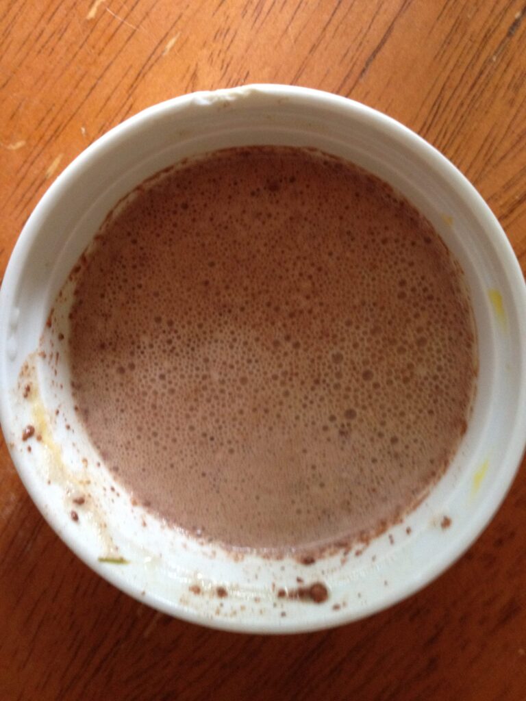 This can be a compliment to breakfast or can be a complete breakfast. This is an incredible way to get super charged nutrition very easily and can be drank quickly…although I try to spread it out and savor every sip. When on the road I will buy eggs at a Whole Foods store and make it on the spot. If you don’t have a jar you can just put the eggs in your mug and stir it with a fork (works almost as well). If this is my only thing for breakfast I will put six eggs in a 16 oz. serving of coffee.